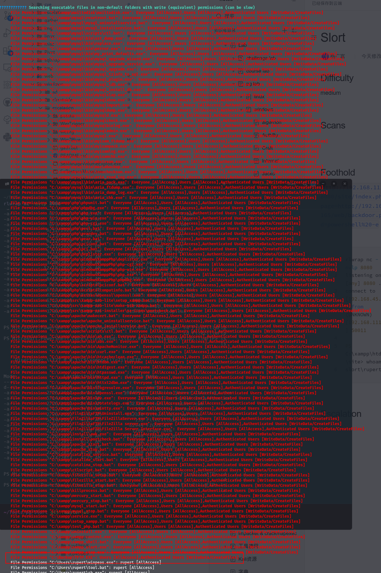 - winpeas的输出中,也同样没有发现backup/TFTP.EXE文件,这部分知识简单扫了一眼都是C:\xampp 下面是 /users, 一定要细致啊